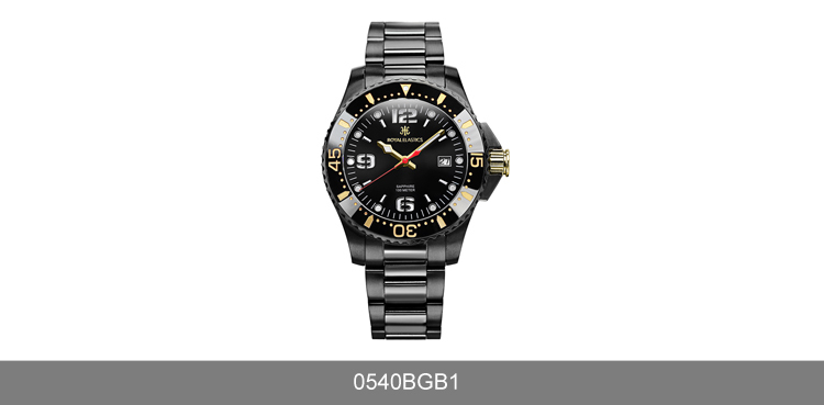 不鏽鋼離子電鍍PVD黑色殼、帶,陶瓷計時圈有不易刮傷、堅硬抗腐蝕的功能,表面光澤飽和更顯質感。