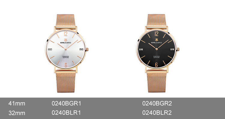 ● 錶殼、錶帶編織精製不鏽鋼材質 PVD 玫瑰金色