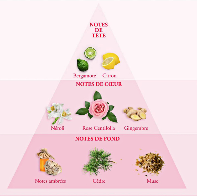 中調notes de Coeur: Neroli橙花,Rose centifolia 千葉玫瑰花水純露,Gingembre 生姜