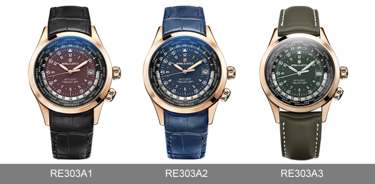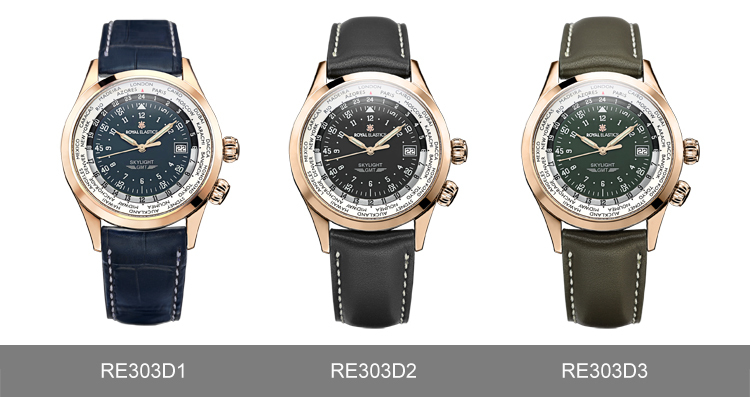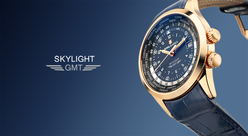 SKYLIGHT的設計理念源自於1939~1945年期間,空軍在執行任務時所配戴的飛行錶,這也是19世紀人類史上真正的把手錶配戴於手腕上的開端,過去飛官必須利用手錶上的計時器來計算飛航的往返行程,再用腕錶上特殊的飛行尺計算燃料及距離,因此ROYAL ELASTICS設計師運用這兩項功能重新朔造飛行概念,以符合現代大眾配戴飛行錶的用途。首先保留過去計時器上的時、分圈判讀用於日常計時,並替換飛行尺改為GMT世界時區,以達到旅遊及商業所需,輕鬆判讀各個國家的所在時間,而飛行錶一直以來都絕對是個經典的存在,ROYAL ELASTICS之選擇這樣的主題也是正逢2021年ROYAL ELASTICS創立25周年,所以我們誠摯邀請您與我們致敬夢想的起飛。