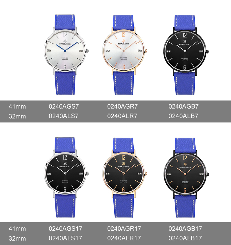 「繁星」既使在黑暗中,依舊耀眼。簡潔的太陽紋面盤展現超然脫俗的氣質,在光線折射下如星閃耀,當中還鑲入4顆代表永恆的真鑽點綴,象徵皇家高貴奢華意象,薄型錶殼搭配多色快拆荔枝紋錶帶編造專屬的品味與個性。